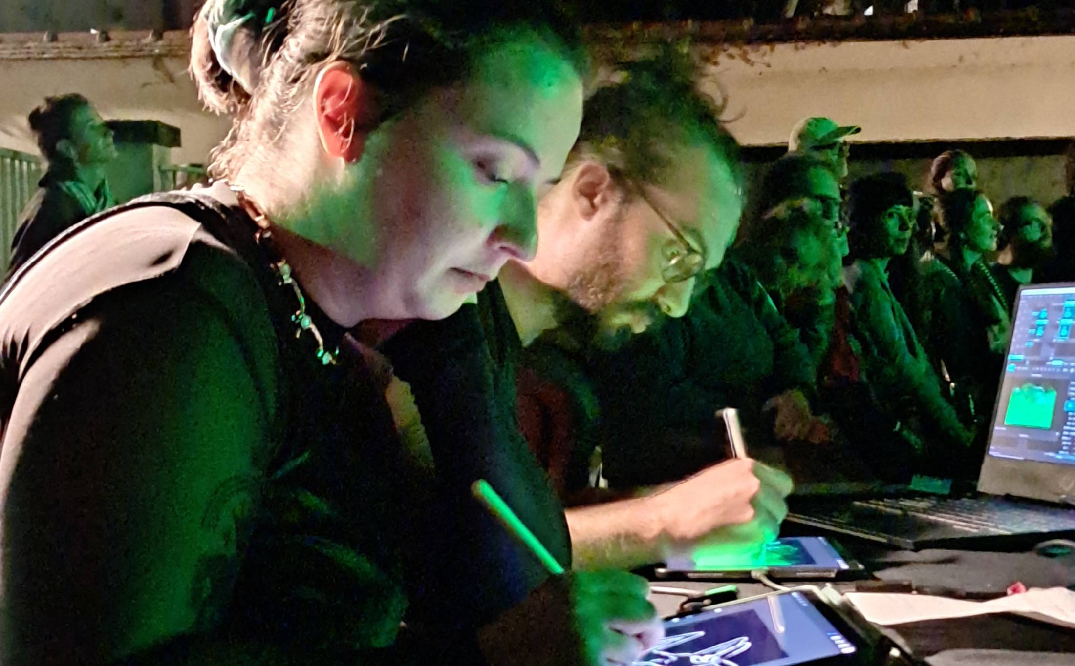 L’équipe de la Cie Del Intermezzo, composée d’une conteuse, de deux dessinateur.trice.s, de trois musicien.ne.s, vous plonge dans un monde captivant et immersif.